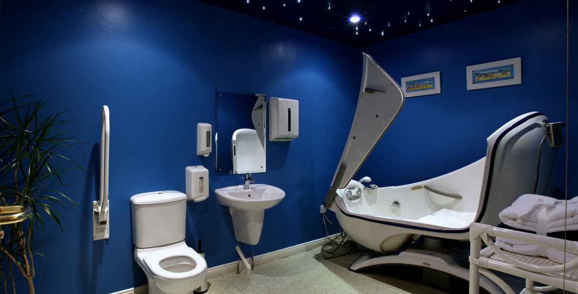It is a bungalow style building which can accommodate ten people, all in single rooms with en suite toilet and washbasin. Several rooms are fitted with tracking hoist to ease transfer issues from bed to chair etc. There are also spacious shower rooms (one en suite) and a bathroom.